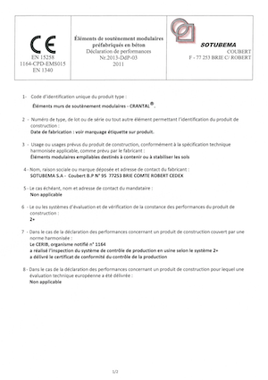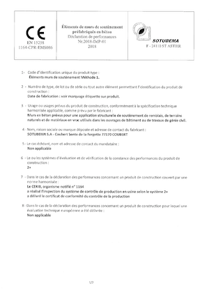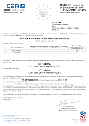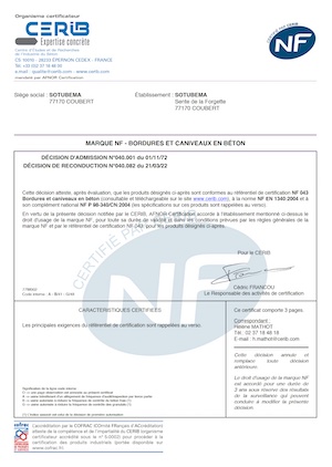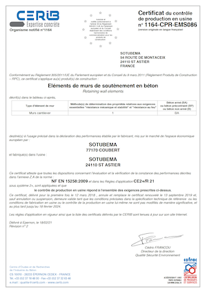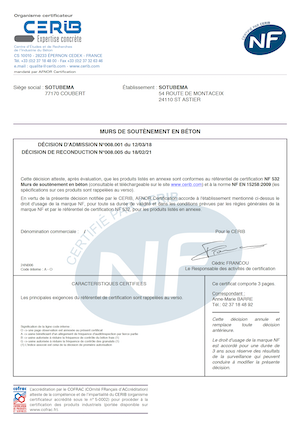 Marque NF Murs de soutènement SOTUBEMA